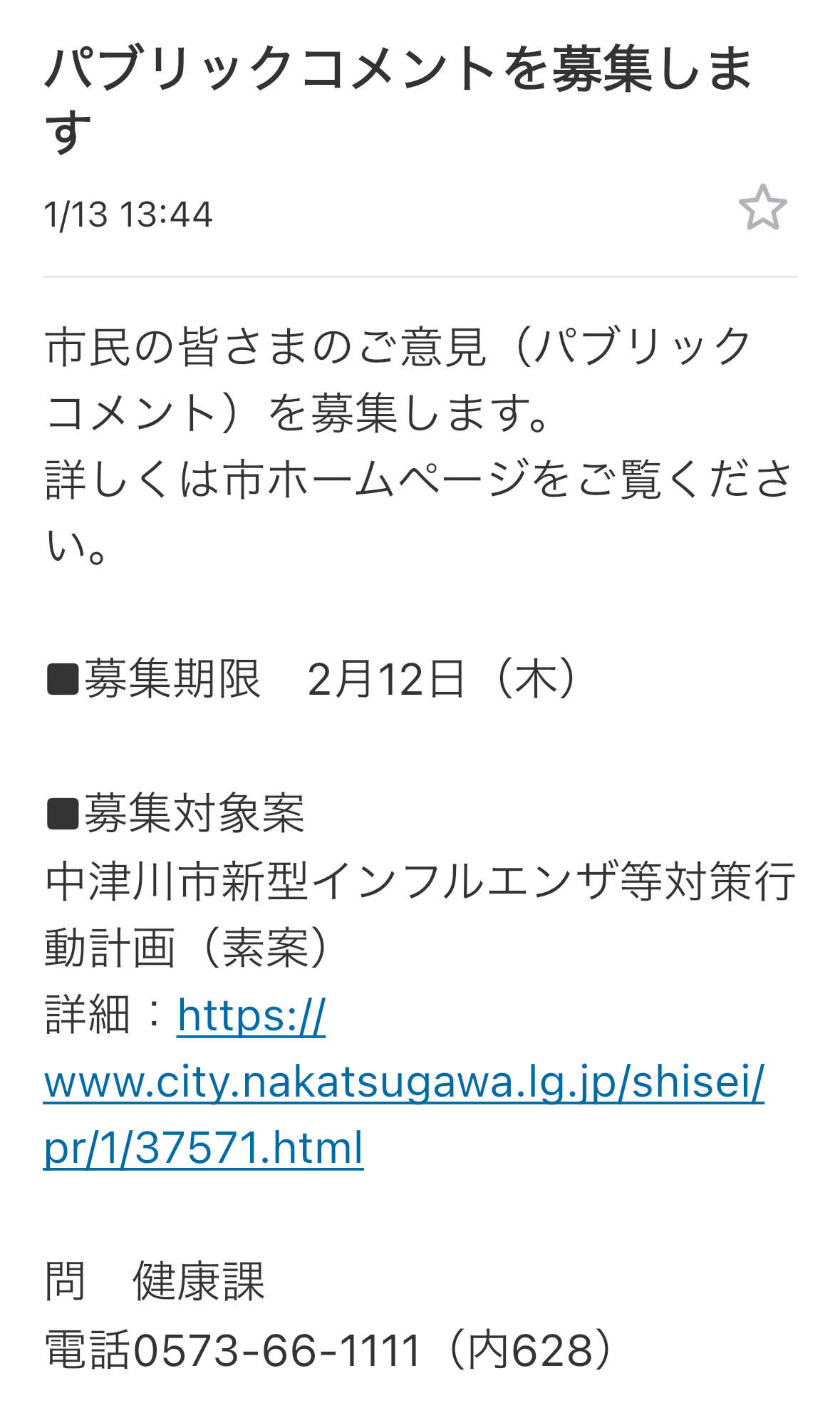中津川市新型インフルエンザ等対策行動計画(素案)への意見(パブリックコメント)を提出しました!