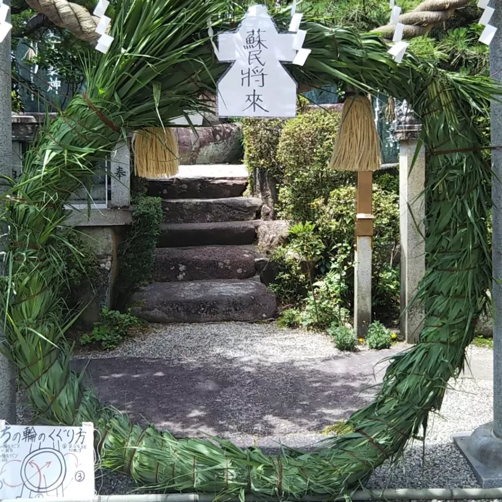 令和5年6月27日~7月1日まで茅の輪をくぐることができます。半年間が過ぎ、無病息災で来れたとこに感謝し、残り半年間を心身健康で行けます様に祈願します。