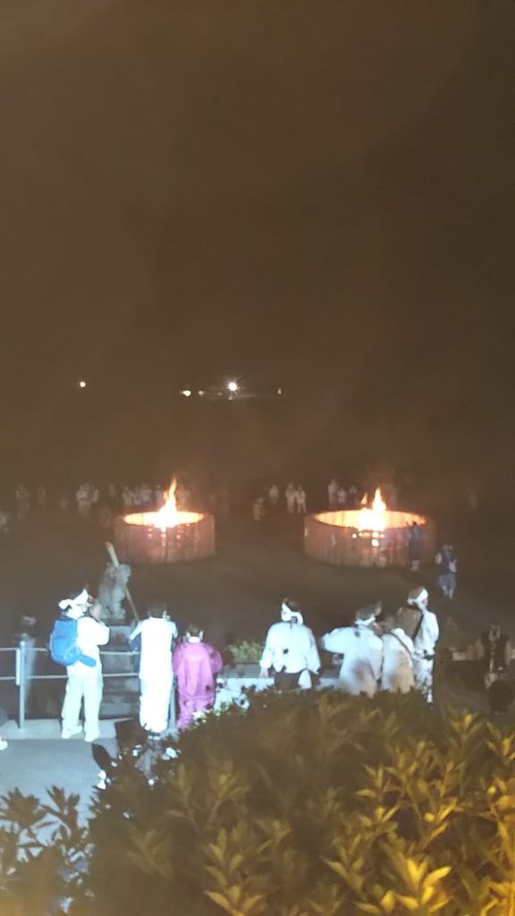 令和4年8月8日(月)午前1時に田の原祭場で御神火祭を行い、斎火をいただき、午後8時に木曽本宮にて大御神火祭を行い、田の原御神火祭の斎火で点火し、天地陰陽の神事を執り行いました。