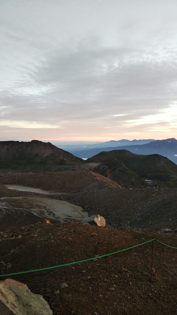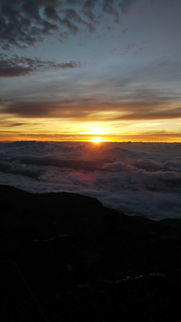 令和四年七月二十三日.二十四日に黒沢口より入り、初日は九号目小屋で宿泊しました。二日目早朝に頂上を目指し、御来光を拝した後に頂上参拝致しました。