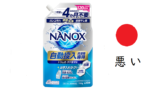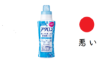 水、ポリオキシエチレンアルキルエーテル、直鎖アルキルベンゼンスルホン酸、アルキルエーテル硫酸エステルナトリウム、アルカノールアミン、安定化剤、再汚染防止剤、エチルアルコール、脂肪酸塩、ポリエチレングリコール、酵素、抗菌剤、香料、亜硫酸ナトリウム、p-トルエンスルホン酸、クエン酸、BHT、着色剤