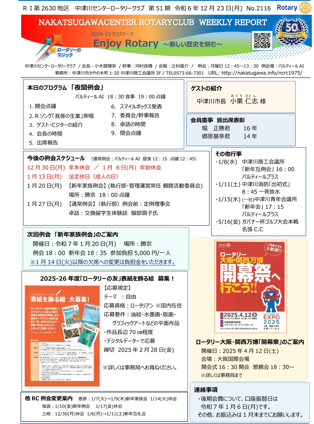 2024年12月23日Rotary Club Weekly Reportです。